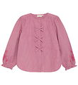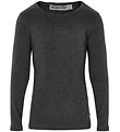 목 부분에 레이스 장식이 있는 회색 멜란지 색상의 사랑스러운 Minymo (미니모) 블라우스 입니다.