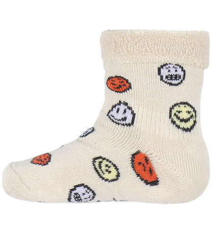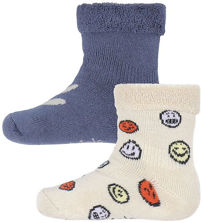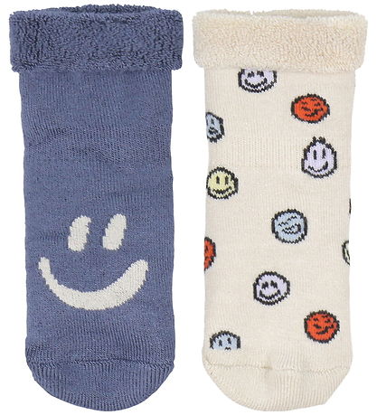 사랑스러운 Molo (몰로) 양말 2개입 으로 출시됩니다. 심플한 스마일리 패턴이 들어간 파란색 양말과 다양한 색상의 스마일리 패턴이 들어간 크림색 양말이 포함되어 있습니다. 두 양말 모두 윗부분에 주름이 있습니다. Molo (몰로) 양말 옷장에 재미있는 요소를 더하기에 완벽합니다.
