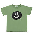 앞면에 흑백 스마일리가 프린트 녹색의 멋진 Molo (몰로) 티셔츠 입니다.