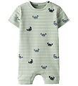 Name It (네임 잇) It 여름용 롬퍼 소매와 기장이 짧고, 목선에 좁은 가장자리가 있습니다. 여름용 롬퍼 왼쪽 어깨와 다리 사이에 실용적인 단추가 달려 있습니다.