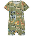 베이지색의 아름다운 Name It (네임 잇) It 여름용 롬퍼 에는 다양한 아프리카 동물이 전면에 프린트.