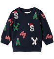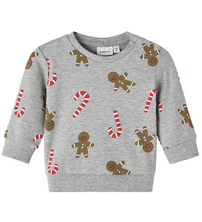 크리스마스 트리와 진저브레드 맨이 빨간색, 흰색, 갈색으로 프린트 멜란지 그레이 색상의 아름다운 Name It (네임 잇) It 맨투맨.