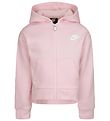 핫핑크 색상의 스웨트 카디건과 레깅스 로 구성된 멋진 Nike (나이키) 세트입니다. 가디건 의 앞면 왼쪽에는 은색 로고가 자수되어 있고, 왼쪽 바지 다리 부분과 가디건 뒤쪽에는 은색 로고가 인쇄되어 있습니다.