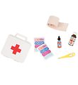 Our Generation (아워 제너레이션) 주방 세트에는 베이킹을 위한 다양한 주방 도구, 냄비 2개와 프라이팬 1개, 도시락통 2개, 유리 시계가 달린 튜브, 계피 롤이 담긴 접시, 전자레인지가 포함되어 있습니다.