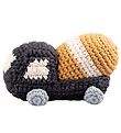 구름 모양의 밝은 파란색 얼룩무늬 니트 소재의 고급 Sebra (세브라) 딸랑이 입니다.