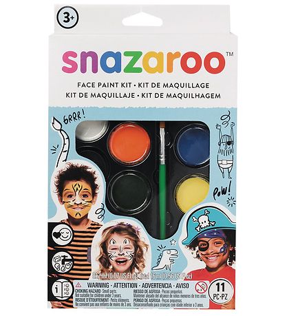SNAZAROO 페이스 페인트는 향료가 없고, 수성이며, 파라벤이 없습니다. 페인트는 얼굴과 몸 모두에 사용할 수 있으며 비누와 물로 제거할 수 있습니다. 페이스 페인트는 민감한 피부에도 사용할 수 있습니다. 브러시, 스펀지, 단계별 설명서가 포함되어 있습니다.