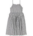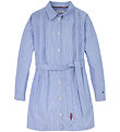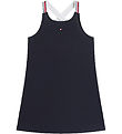진한 파란색의 우아한 Tommy Hilfiger (토미힐피거) 원피스. 원피스 원피스 부분은 가로 흰색 스트라이프로 장식되어 있습니다. Tommy Hilfiger (토미힐피거) 원피스 라운드 네크라인에 앞면에 은은한 로고가 새겨져 있습니다. 목 부분에는 세 개의 버튼이 있어 입고 벗기가 편리합니다.