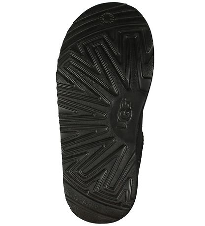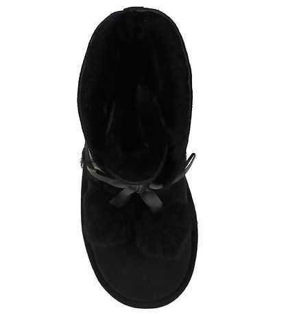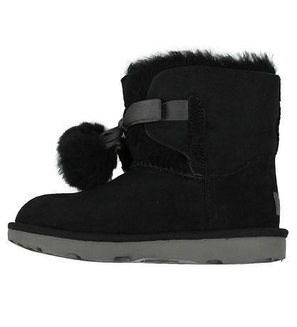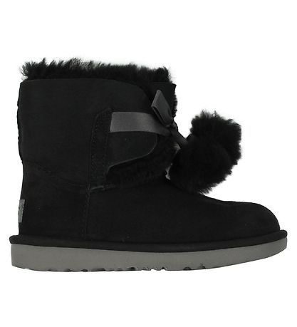 앞부분에 폼폼과 함께 예쁜 리본 장식이 달린, 견고한 검정색의 예쁜 UGG (어그) 테디 부츠.
