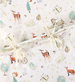 흰색 바탕에 검정색과 노란색 벌이 프린트 있고 파란색 날개가 달린 고급 Vanilla Copenhagen (바닐라 코펜하겐) 침구. 주변에는 파란색과 갈색 계열의 육각형 점들이 있습니다.