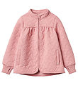 분홍색의 멋진 Wheat (위트) 방한 재킷. 서멀 재킷은 물결 모양의 퀼팅 구조를 가지고 있습니다.