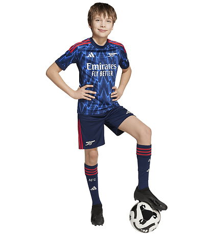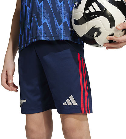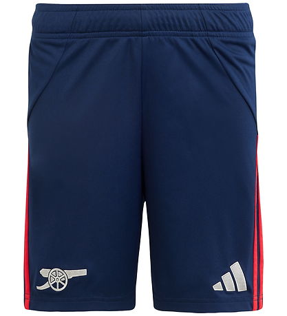 Prachtige adidas Performance shorts in navy met mooie contrasterende in rood strepen langs de zijkanten en onderaan de rechterbroekspijp een logo van de Engelse voetbalclub Arsenal. De Shorts is geïnspireerd op het uittenue van het team in seizoen 25/26.