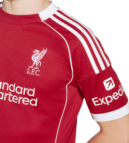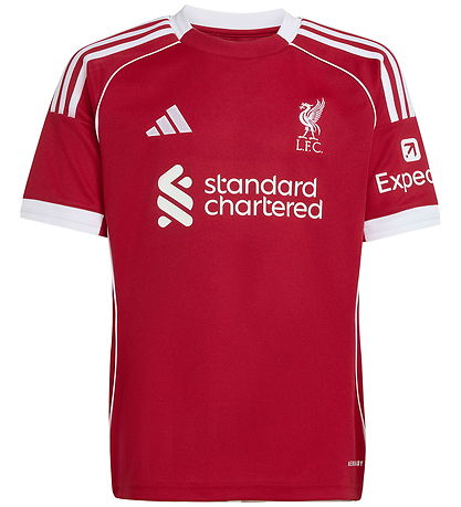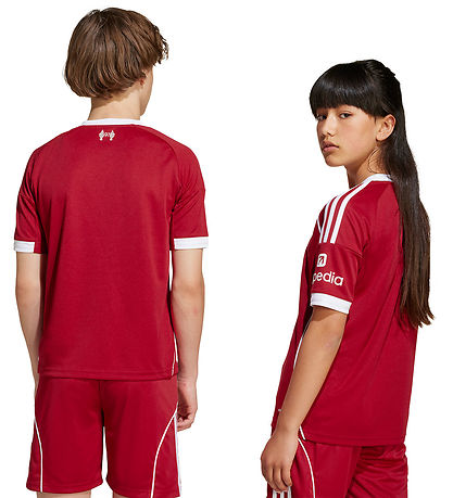 Smart adidas Performance voetbalshirt in rood met witte details. Op de voorkant staat het logo van de Engelse voetbalclub Liverpool FC. Het voetbalshirt is geïnspireerd op het thuisset van het team uit seizoen 25/26.