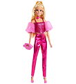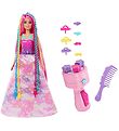 Mooi Barbie met lang blond haar, met paars en roze strepen. De Pop draagt een mooi, kleurrijk jurk en een roze ketting. De volgende accessoires Meegeleverd :