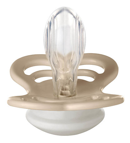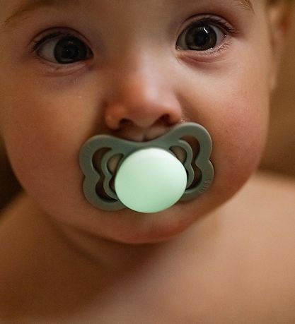 BIBS nachtfopspenen hebben een symmetrische fopspeenkop van silicone van voedsel-goedgekeurd. Het schildje van de fopspeen voor de nacht is gemaakt van lichtgewicht PP en heeft een geoptimaliseerd, breed vlinderontwerp met praktische luchtgaten. Zo wordt ongemak door de vochtige omgeving en het vacuüm tegen de huid van het kind vermeden.