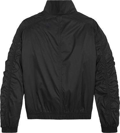 Cool Calvin Klein - jas in zwart met "CK" gedrukt in wit, en daarboven staat "Calvin Klein Jeans" in grijs geschreven aan de linkerkant.