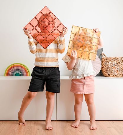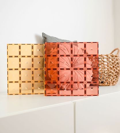 Grappige Connetix magneetborden waarvan een in rood en een in geel.