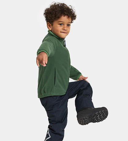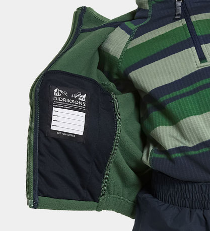 De Didriksons fleece jas heeft een hoge keel en hebben smalle, elastisch mouwen. De Fleece jas opent met een rits met scheenbeschermers en een windpost aan de binnenkant, en heeft praktische zakken aan de zijkanten.