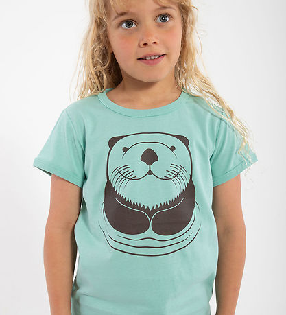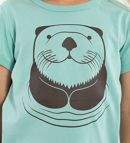 Prachtig ANIMAL t-shirt in lichtgroen, en op de voorkant staat een grote print van een zeeotter in donkerbruin.