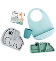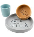 Praktische Done by deer eerste maaltijdset in grijs, blauw en groen, met print van tinten de olifant en Croco de krokodil, bestaande uit: