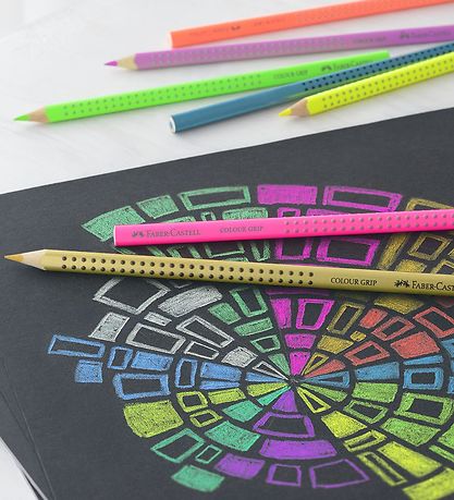 Prachtige Faber-Castell kleurpotloden bestaande uit 12 kleuren, waaronder enkele in pastel, neon en metallic.