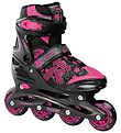 Stijlvolle Fila rolschaatsen in het zwart met details in rood en reflecterend zilver.