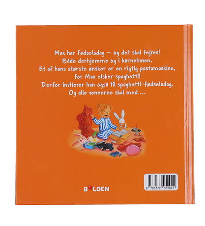 Het boek Forlaget Bolden is een gezellig, klein verhaaltje over de jongen Max, die naar de kleuterschool gaat. Max is jarig en wil alle kinderen van de kleuterschool uitnodigen voor een spaghettifeestje, want Max is dol op spaghetti. De pagina's van het boek zijn voorzien van kleurrijke illustraties en tekst.