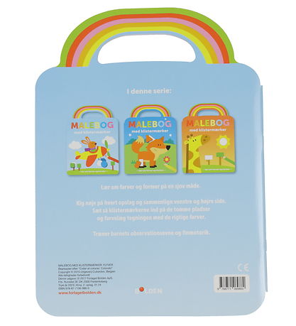 Het kleurboek van Forlaget Bolden heeft 24 pagina's met gedeeltelijk gekleurde illustraties, die kunnen worden ingekleurd en versierd met de meegeleverde stickers. Het Kleurboek leert kinderen over kleuren en vormen.