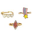 - Een armband met kleine kralen in de kleuren geel, roze, groen en blauw