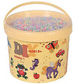 De Hama kralen worden geleverd in een groot emmer met transparant deksel waarin 30.000 Midi kralen zitten.