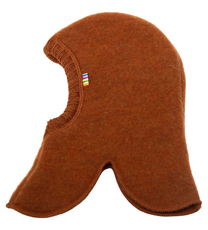 Leuke Joha bivakmuts van gevlekt, oranje, gevilte wol.