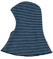 Elegante Joha bivakmuts in donkerblauw met een geribbelde structuur. De Joha bivakmuts heeft een rond kopvorm en bestaat uit twee lagen met een spliteffect aan de onderkant.