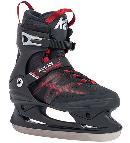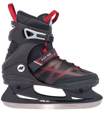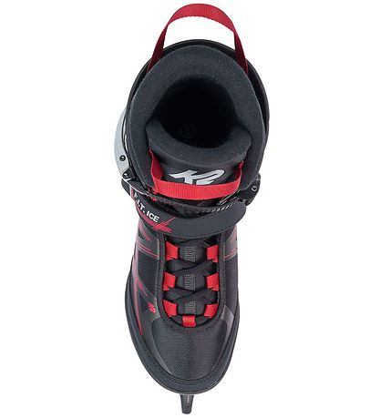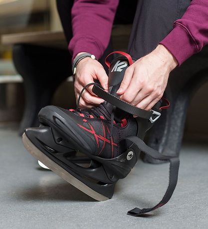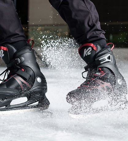 Stoere K2 schaatsen in zwart, met details in rood en zilver.