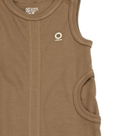 Leuke Katvig romper m. voetjes met lange mouwen in het bruin. Het model heeft praktische zakken en knoopsluitingen bij de benen voor gemakkelijk aankleden en comfort.