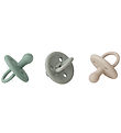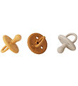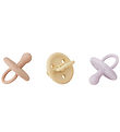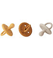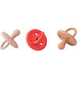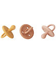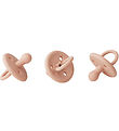 Mooie Liewood speen verkocht als 3-pack in de roze, beige en licht roze. Aan de onderkant van de ring bevindt zich een leuk, klein teddybeermotief.