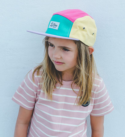 Heerlijk Lil' Boo pet met leuke blokkleuren in geel, roze en groen, ook een lavendel afkapping. Op de voorzijde bevindt zich een mooie logoapplicatie.