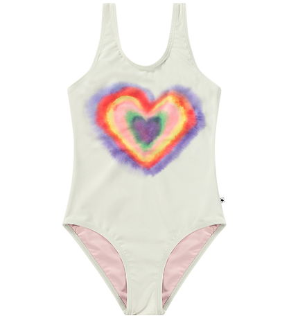 Prachtig Molo zwempak in het wit met een kleurrijke, hartvormige print op de borst.
