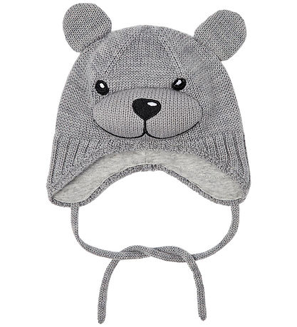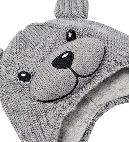 Schattige Name It muts in gebreid kwaliteit in dusty met een geborduurd berengezichtje op de voorkant en schattige oortjes.