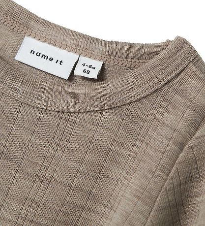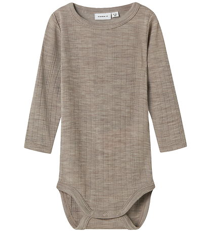 Mooie Name It romper in grijs met ribstructuur. De Romper heeft een rond hals en lange mouwen. Hij sluit af met drukknoppen tussen de benen. De Romper is gemaakt van zachte en ademende merinowol.