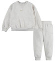 Leuke Nike sweatset in rood, bestaande uit een sweatcardigan en een paar met geborduurd logo en merknaam in het wit.