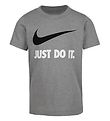 Klassiek Nike t-shirt in grijs gevlekt met een wit mark en logoborduursel op de linkerborst.