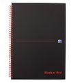 Praktisch Oxford notitieboekje met een zachte cover van zwart plastic. Op de voorkant staat "Black n' Red" onderaan de omslag in rood geschreven. In het midden van de voorkant bevindt zich een rood lijn en een Oxford - logo. Het notitieboekje heeft een rood spiraalvormige rug.