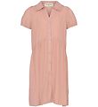 Elegante Sofie Schnoor jurk in het wit met korte mouwen, versierd met prachtige anglaise borduurwerk. De Jurk heeft fijne gekreukeld panelen en knoppen aan de voorkant, wat zorgt voor een stijlvolle uitstraling. Perfect voor elke garderobe.