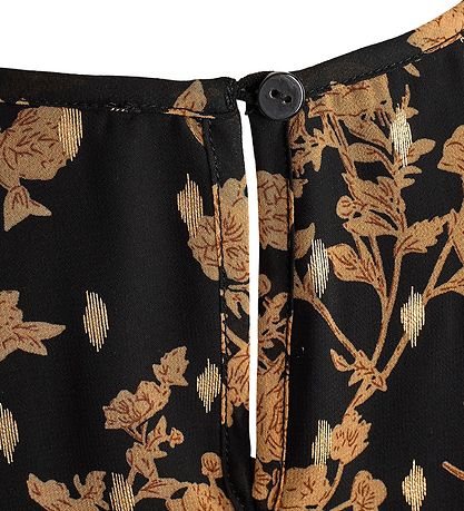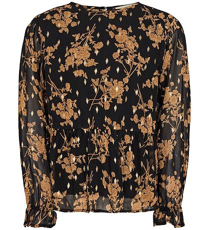 Schattige Sofie Schnoor blouse in het zwart met een allover print van bloemen in tinten met goudkleurige details.