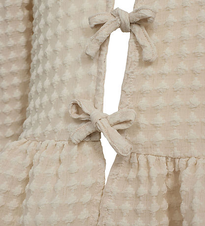 Het Sofie Schnoor overhemd heeft lange mouwen met gepofte schouders. Aan de onderkant heeft hij een brede rushes. Het Overhemd heeft een V-hals en sluit aan de voorkant met drie trekkoorden. Het Overhemd is aan de voorkant open, je moet er dus een t-shirt of blouse onder dragen.