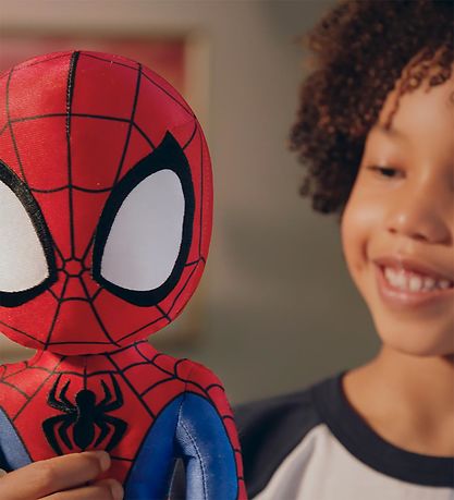 De Spidey knuffel kan verlichten vanaf de borst met het logo van Spiderman in het blauw. De Knuffel kan ook 15 verschillende, coole geluidjes maken door er met één hand op te drukken. De Knuffel is comfortabel en in glad-gewoven kwaliteit, waardoor hij heerlijk slaapt.