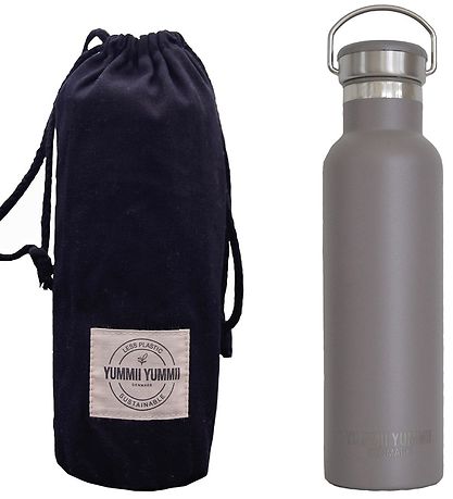 De Yummii Yummii thermofles wordt geleverd in een GOTS-gecertificeerde stoffen zak. Het heeft een grote, ronde schroefdropsluiting en de fles heeft een inhoud van 600 ml.
