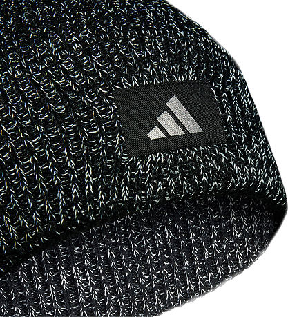 Smart adidas Performance muts in zwart met wit details. Aan de voorkant zit een grijze patch met het logo van het merk.