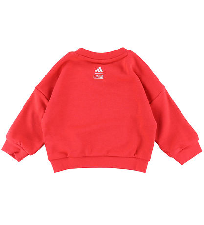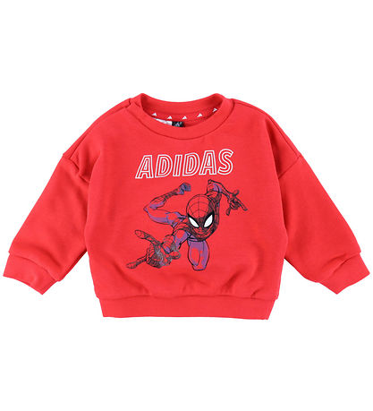 - Het Sweatshirt is rood met een wit logoprint en een swingende Spider-Man op de voorkant.