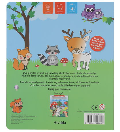 Het kleurboek van Alvilda bestaat uit 12 dikke pagina's met deels gekleurde en deels witte illustraties, waarbij je de prachtige kleuren uit de witte onderdelen naar voren kunt halen door simpelweg het penseel in water te dopen en op de witte onderdelen te schilderen.