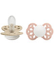 De BIBS nachtfopspenen hebben een symmetrisch, plat speenhoofdje van natuurlijk rubber. Het schildje van de speen is gemaakt van lichtgewicht PP en heeft een geoptimaliseerd, breed vlinderontwerp met praktische luchtgaten, zodat hinder van de vochtige omgeving en het vacuüm tegen de huid van het kindje wordt vermeden. Het midden van de nachtfopspenen licht op in het donker, zodat ze 's nachts niet tussen knuffels en kussens verdwijnen. Vergeet niet om het vijf seconden onder het licht te houden voordat u de tijd instelt.